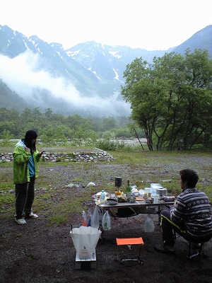 朝のうちにタクシーで上高地まで上がってテントを設営して