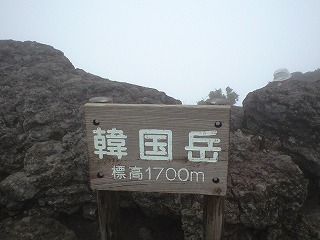 残念ながら韓国岳山頂(1700m)に着いてもガスは晴れることはありませんでしたぁ