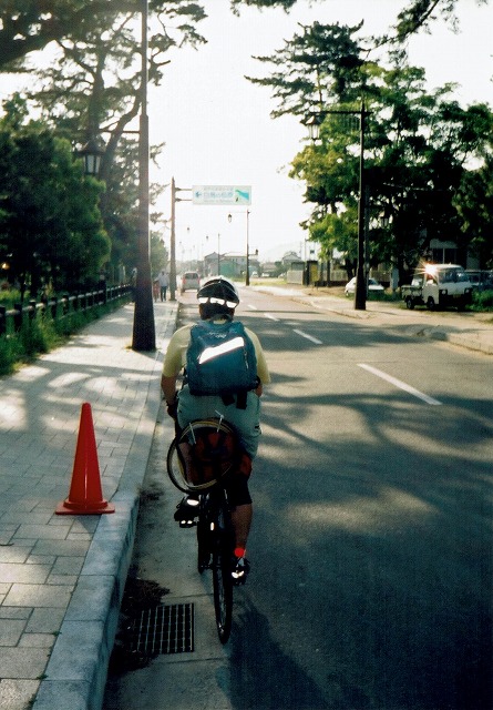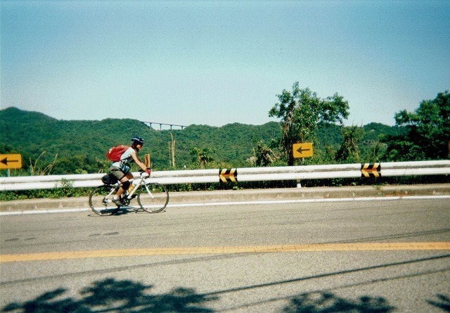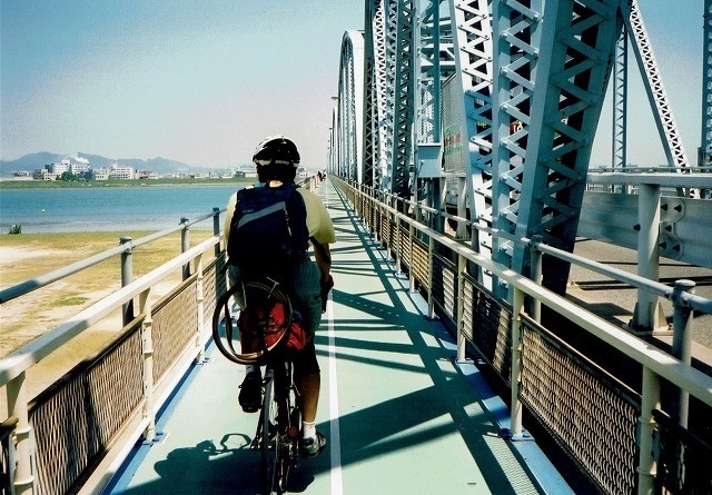 気持ちよく下りながら橋を越えて→