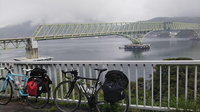 昨日渡った大島大橋をバックに