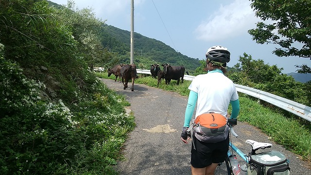 牛との出会いを楽しみながらひたすら登っていると