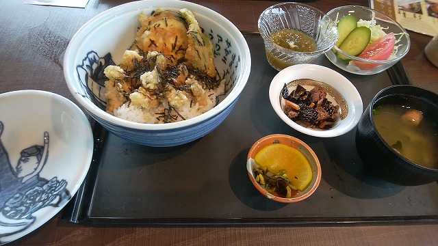 vガンバリマシタせっかくなので名物のさざえ天丼を美味しくいただきました