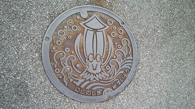 西ノ島のマンホールはイカです!(笑)→