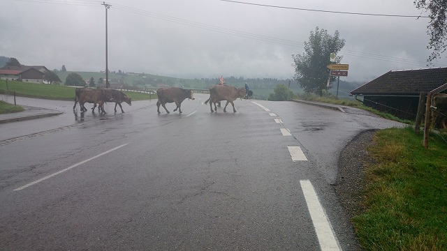停まっているとなんと牛の行列が横断(笑)⇒