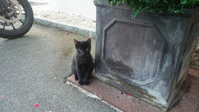↑まるで『魔女の宅急便』のジジみたいな猫がおとなしくお迎えしてくれました