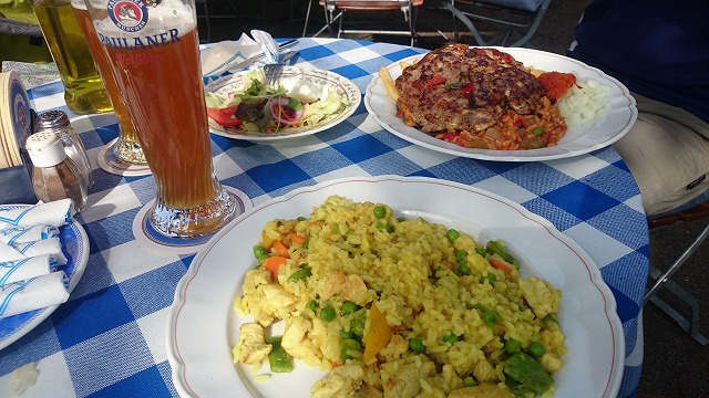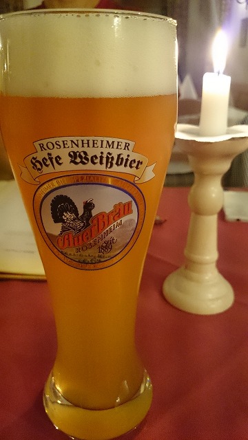 おきまりのツバイヴァイスビアーを頼んで
